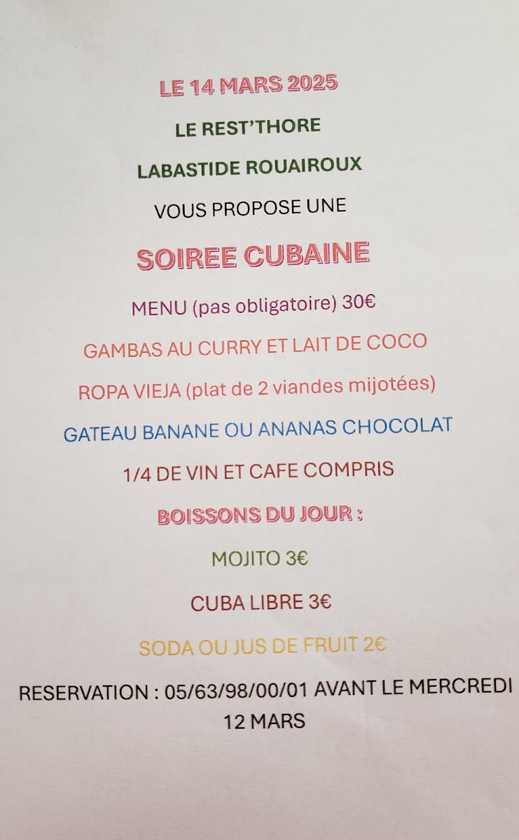 Welcome to Le Rest'Thoré, a hidden gem located at 114 Bd Carnot in the picturesque village of Labastide-Rouairoux, France. This charming restaurant is renowned for its rustic atmosphere and heartfelt service, as highlighted by patrons who admire the owner’s warm hospitality. The menu showcases comforting home-cooked meals, with a standout dish being the irresistible cassoulet, available every Friday and Saturday evening. The chef's dedication to traditional recipes is evident in every bite, leaving diners eager for their next visit.